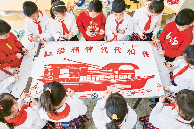 圖為內(nèi)蒙古呼和浩特市恒昌店巷小學(xué)開展“紅船精神代代相傳”主題教育活動(dòng),通過(guò)制作紅船剪紙作品、講述紅船故事等豐富多彩的形式,教育孩子們知史愛黨、知史愛國(guó)。 人民圖片 丁根厚/攝