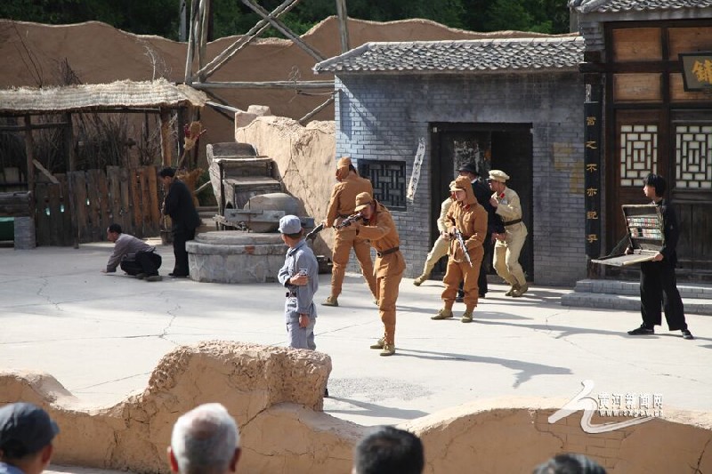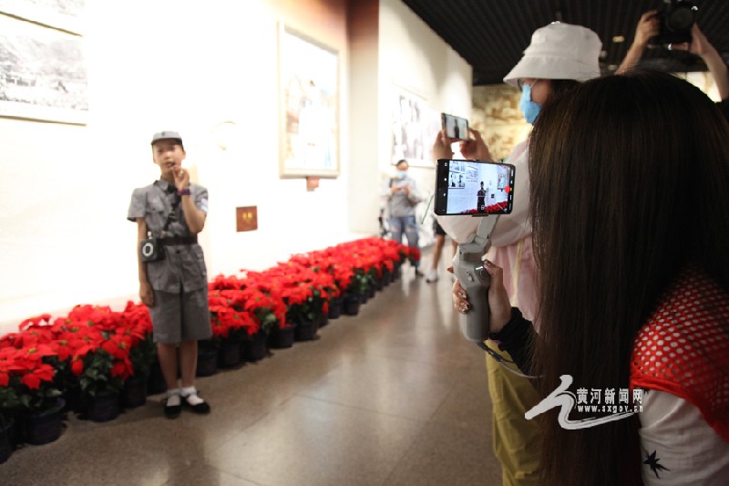 “左權(quán)將軍犧牲后,當(dāng)時(shí)遠(yuǎn)在延安的妻子劉志蘭飽蘸血淚,揮筆寫下了一封感人肺腑的長信《為了永恒的記憶——寫給權(quán)》,以寄托對左權(quán)將軍的哀思?!弊鳛樾⌒“寺分v解員,今年11歲的武鄉(xiāng)太行小學(xué)學(xué)生石曼玉在展館內(nèi)向大家講述左權(quán)將軍的事跡。 隨后,媒體代表參觀八路軍文化園,觀看情景劇表演《反掃蕩》。