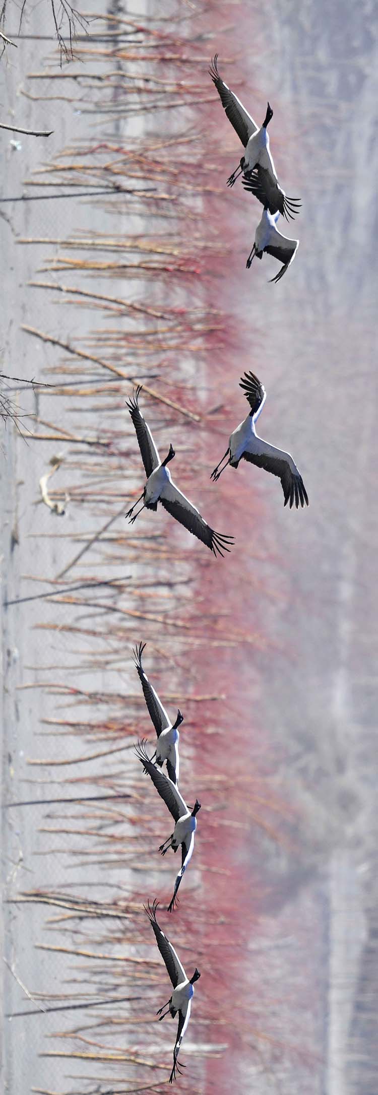 黑頸鶴被稱為“鳥類大熊貓”,雅魯藏布江及江畔的農(nóng)田成了它們越冬的樂園。新華社記者 張汝鋒 攝