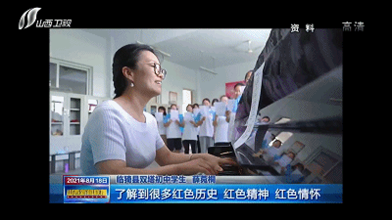 這里是運(yùn)城,我現(xiàn)在是在臨猗縣雙塔初中,學(xué)校舉辦的暑期托管班上,老師正利用聲樂課給孩子們教唱經(jīng)典革命歌曲。