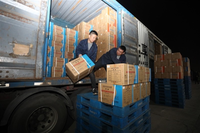 10月13日晚,遼寧方大集團捐贈的9車救災(zāi)物資到達我市應(yīng)急儲備庫。