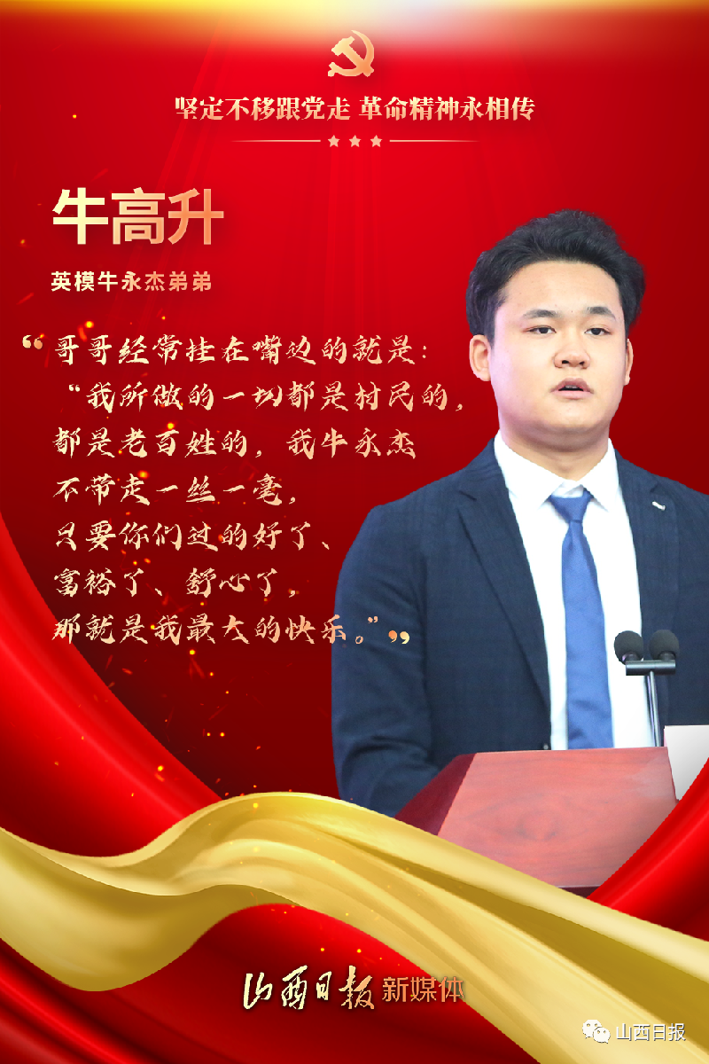牛永杰,男,1994年生,臨汾市鄉(xiāng)寧縣人,2018年9月加入中國(guó)共產(chǎn)黨。2015年12月參加工作,先后榮獲個(gè)人嘉獎(jiǎng)二次。2017年在“全省公安部門技術(shù)比武”中榮獲個(gè)人一等獎(jiǎng)。2020年3月18日,任大寧縣昕水鎮(zhèn)安古村駐村第一書記,2020年4月9日,在工作期間突發(fā)疾病搶救無(wú)效,不幸逝世,年僅26歲。