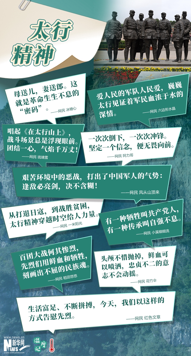 巍巍太行山,滔滔漳河水。今天,沿著當(dāng)年的抗戰(zhàn)足跡望去,一度“山窮水遠(yuǎn)路閉塞”的革命老區(qū)已煥發(fā)新顏,一幅“山里有美景,山上有產(chǎn)業(yè),山下有新居”的美好畫卷正徐徐展開(kāi)?!皬拇蛲巳湛?,到戰(zhàn)勝貧困,太行精神穿越時(shí)空給人力量”,正如網(wǎng)民所說(shuō),雖然抗日烽火早已熄滅,但偉大精神永不褪色,將永遠(yuǎn)激勵(lì)中國(guó)人民克服艱難險(xiǎn)阻、闊步向前。(文字:馬若虎 海報(bào)設(shè)計(jì):王曄)