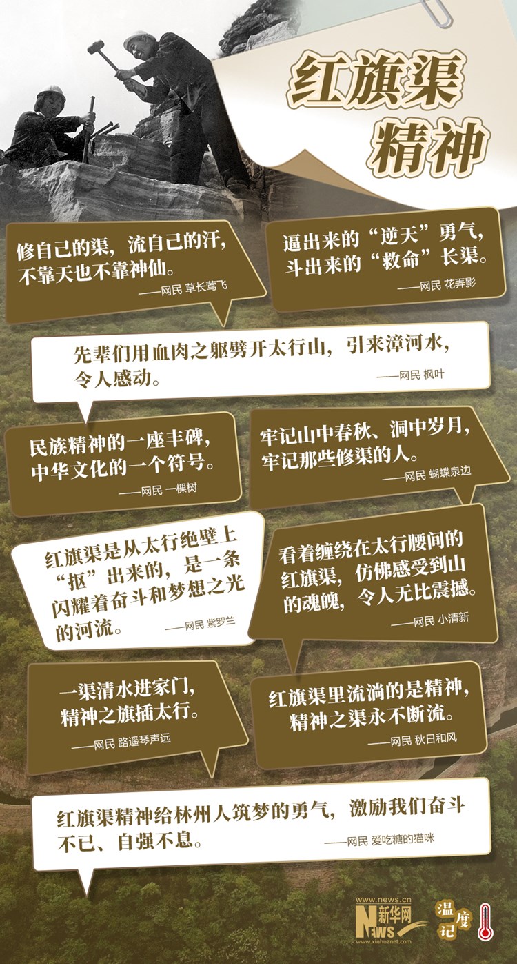 “紅旗渠里流淌的是精神,精神之渠永不斷流”,正如網(wǎng)民所說,歲月可以風化堅硬的太行山石,唯有精神不可隨風而去。50多年前,這里萬人空巷、歡慶渠成;50多年后,這里依然渠水奔流、激勵人心。弘揚紅旗渠精神,團結協(xié)作、艱苦奮斗,必將推動我們的事業(yè)在新時代新征程上不斷前進。(文字:董璐 海報設計:王曄)