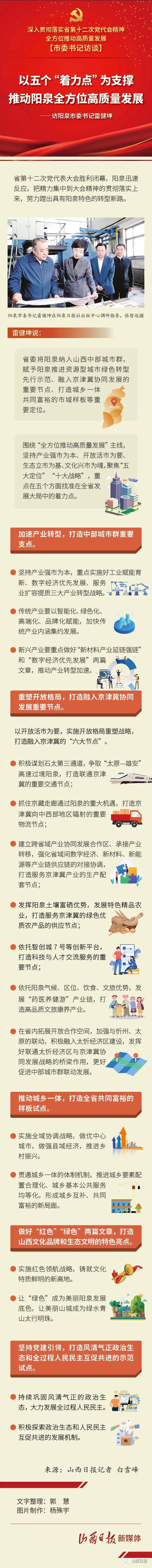 圖解 | 以五個(gè)“著力點(diǎn)”為支撐 推動(dòng)陽(yáng)泉全方位高質(zhì)量發(fā)展——訪陽(yáng)泉市委書(shū)記雷健坤