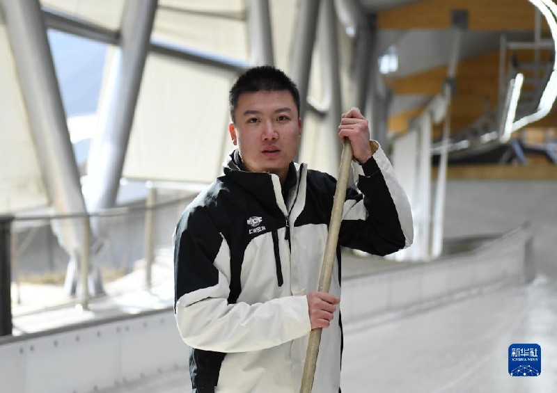 2021年1月27日,朱永濤在清掃冰面。新華社記者 張晨霖 攝
