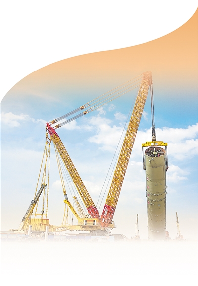 徐工4000噸級(jí)履帶式起重機(jī)正在吊起煤炭液化反應(yīng)器。資料照片