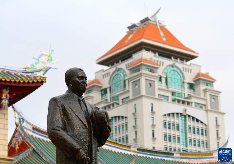 這是廈門大學里的陳嘉庚雕像(4月1日攝)。新華社記者 魏培全 攝