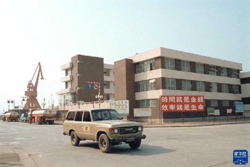 深圳市蛇口工業(yè)區(qū)辦公大廈旁掛著“時間就是金錢,效率就是生命”標語牌(資料照片)。新華社記者 徐佑珠 攝