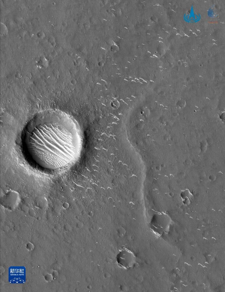 這是國家航天局公布的“天問一號”拍攝的高清火星影像圖。新華社發(fā)(國家航天局供圖)