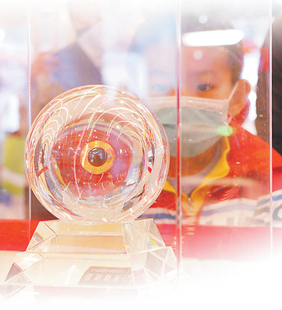 國家“十三五”科技創(chuàng)新成就展上展出的月球樣品。劉淮宇攝