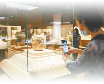 觀眾參觀上海博物館與新加坡亞洲文明博物館聯(lián)合舉辦的“寶歷風(fēng)物——黑石號(hào)沉船出水珍品展”。王 初攝(影像中國)