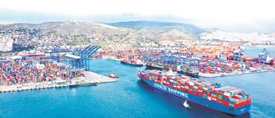 2019年2月15日,中國超大型集裝箱貨輪抵達(dá)希臘比雷埃夫斯港。新華社發(fā)