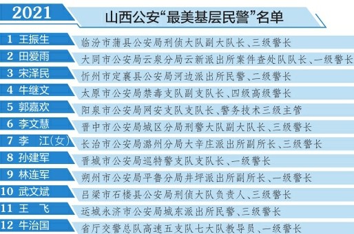 這次受表彰的民警,是全省廣大基層公安民警的優(yōu)秀代表,是2021年在防風(fēng)險、保安全、護(hù)穩(wěn)定、促發(fā)展、戰(zhàn)疫情一線,特別是在慶祝建黨100周年安保維穩(wěn)和“我為群眾辦實事”實踐活動中涌現(xiàn)出的基層民警先進(jìn)典型。他們雖然崗位不同,但始終不忘初心、忠誠履職、敬業(yè)奉獻(xiàn),用熱血忠誠、無悔奉獻(xiàn)書寫著新時代山西公安“最美”的警察人生。