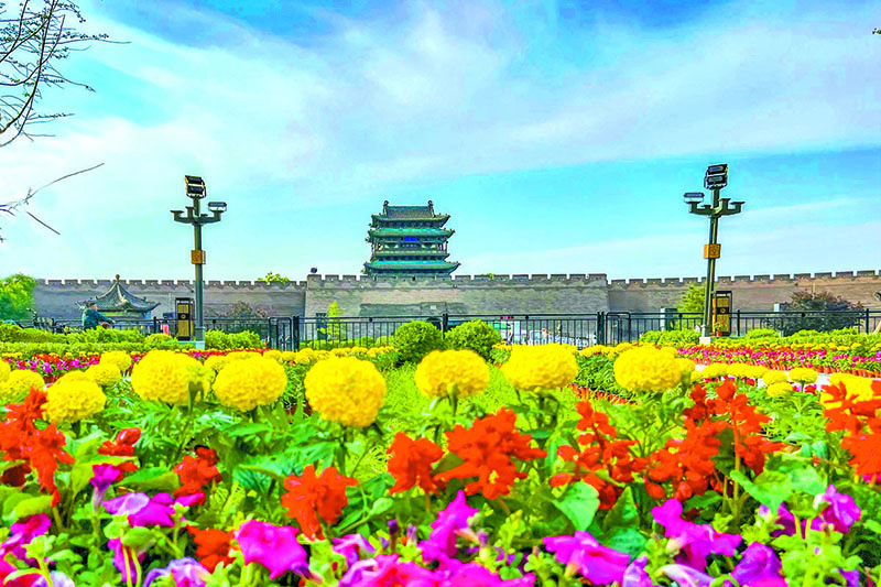 平遙古城迎薰門廣場花團(tuán)錦簇