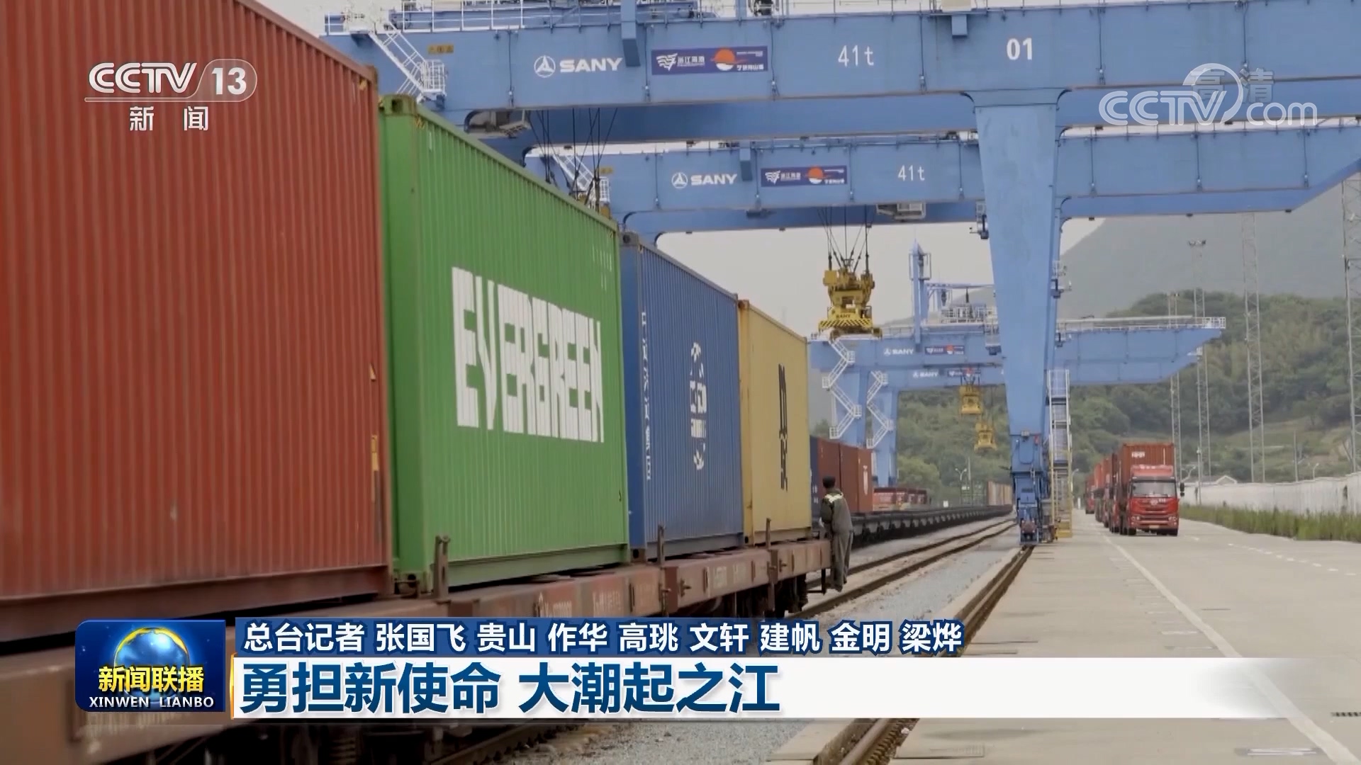 浙江地處長三角南翼,是我國改革開放先行區(qū)之一。今天(6月3日)上午,在寧波舟山港鐵路穿山港站,一批滿載家電和太陽能等設(shè)備的集裝箱,即將運往馬來西亞、新加坡等“一帶一路”沿線國家和地區(qū)。