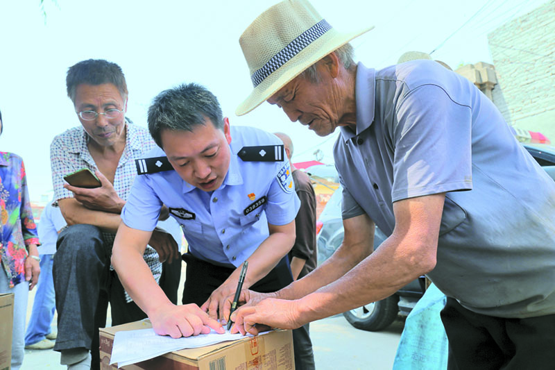 楊玉超正在入戶開展反詐宣傳。通訊員 李鵬 攝