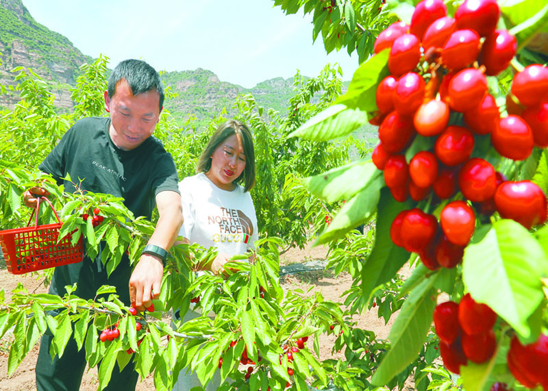 六月的麻田熱情似火。在左權(quán)麻田軍民共建櫻桃觀光現(xiàn)代產(chǎn)業(yè)園,一串串、一顆顆玲瓏可愛的紅櫻桃掩映綠樹叢中,散發(fā)著誘人的醇香。鮮嫩飽滿的櫻桃晶瑩剔透,吸引四面八方的游客慕名而來,切身體驗(yàn)采摘的樂趣,品嘗夏季的甜蜜。