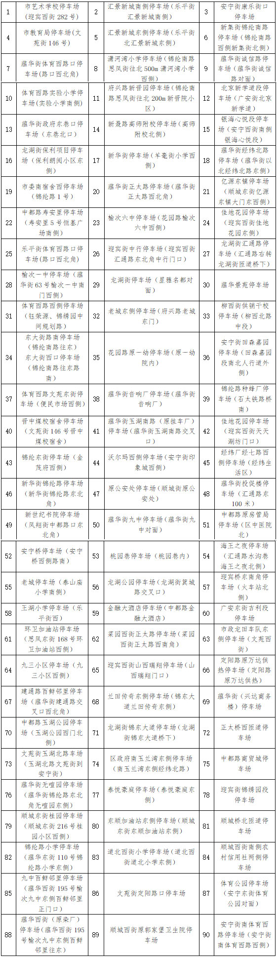 市城區(qū)政府免費(fèi)停車場位置明細(xì)表