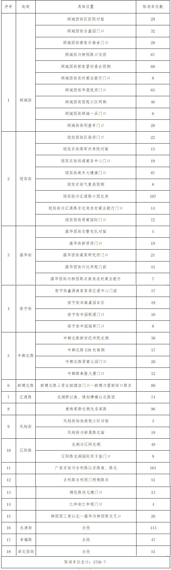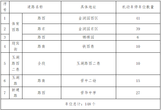 晉中市城區(qū)限時停車位施劃明細(xì)表