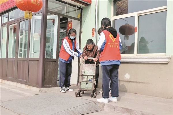 平遙現(xiàn)代工程技術(shù)學(xué)校旅游系團支部志愿者關(guān)心幫助孤寡老人。 本報通訊員 張彩琴 攝