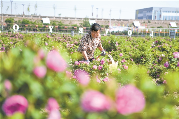 平遙縣岳壁鄉(xiāng)黎基村村民在玫瑰農(nóng)業(yè)生態(tài)觀光產(chǎn)業(yè)園采摘玫瑰。 通訊員 梁生仁 攝