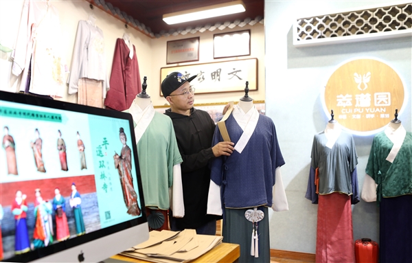 著一襲漢服,持一把紙傘或一把團(tuán)扇,配一款“前世今生”的“如意紋”手袋,走進(jìn)平遙古城明清街上的“萃譜園”漢服旅拍館,宛如穿越回500年前的明代漢服店鋪,百余款漢服呈現(xiàn)在眼前,典雅端莊,知性溫婉。
