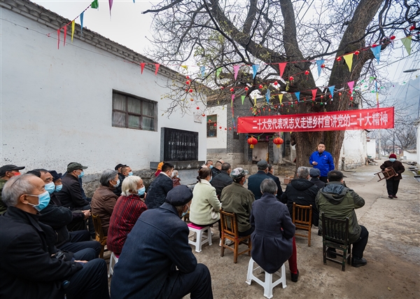 在家鄉(xiāng)南會村,鞏志義深入村民中,宣講黨的二十大精神。