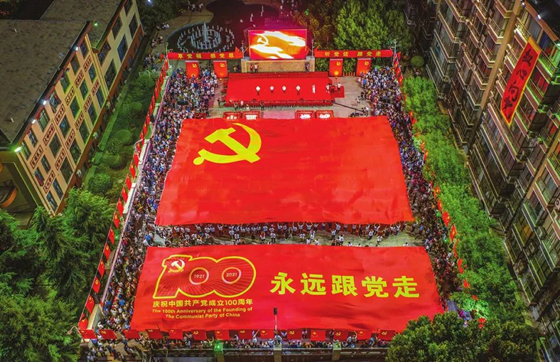 ▲強(qiáng)化黨建引領(lǐng),積極構(gòu)建城市基層治理新格局。圖為2021年6月27日,山西省運(yùn)城市開展“萬人傳遞黨旗、慶祝建黨百年”主題黨日活動(dòng)。