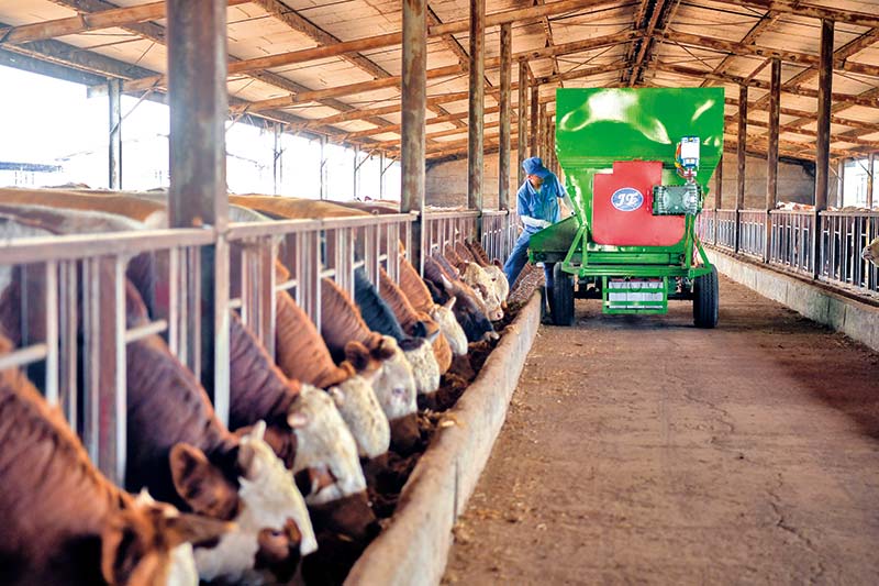 6月19日,飼養(yǎng)員在平遙縣華春肉牛養(yǎng)殖有限公司肉牛繁育基地進(jìn)行機(jī)械化飼喂。該公司加強(qiáng)良種繁育體系建設(shè),通過(guò)“公司加基地,基地連農(nóng)戶(hù)”的模式,實(shí)行科學(xué)化管理、機(jī)械化飼喂,推動(dòng)全縣乃至全省肉牛養(yǎng)育產(chǎn)業(yè)化,實(shí)現(xiàn)區(qū)域肉牛年出欄1萬(wàn)余頭,為平遙牛肉專(zhuān)業(yè)鎮(zhèn)建設(shè)提供綠色安全肉品保障。