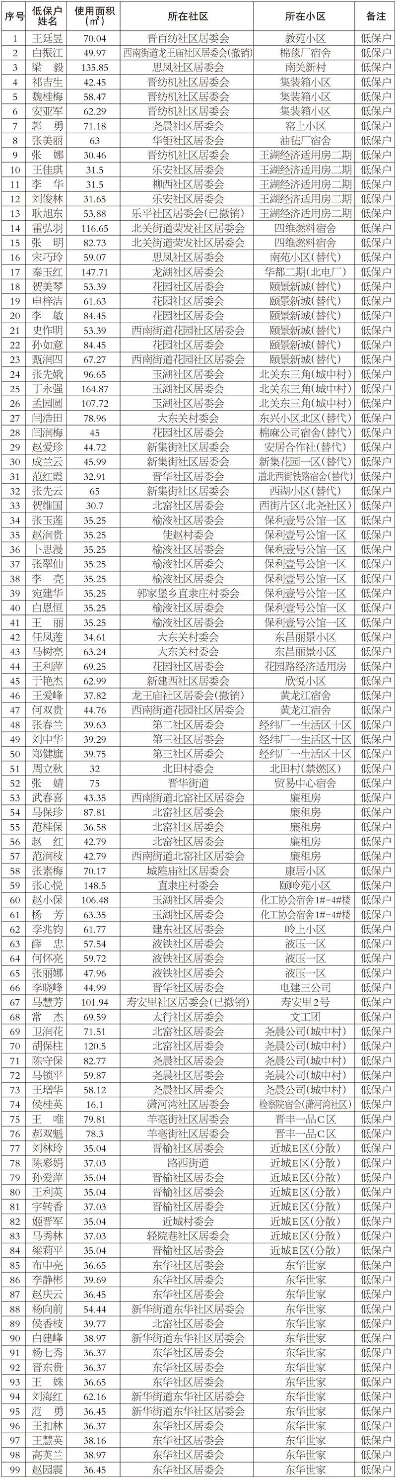2022-2023采暖期市城區(qū)集中供熱區(qū)域低保戶(hù)和特困戶(hù)公示名單
