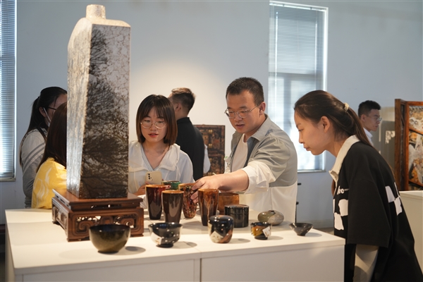采風團記者欣賞精美的平遙推光漆器制品
