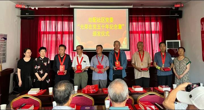 6月29日下午,在喜迎建黨102周年之際,榆次區(qū)紡配社區(qū)黨委向17位黨齡達(dá)到50周年且政治素質(zhì)過硬的老黨員頒發(fā)“光榮在黨50年”紀(jì)念章。