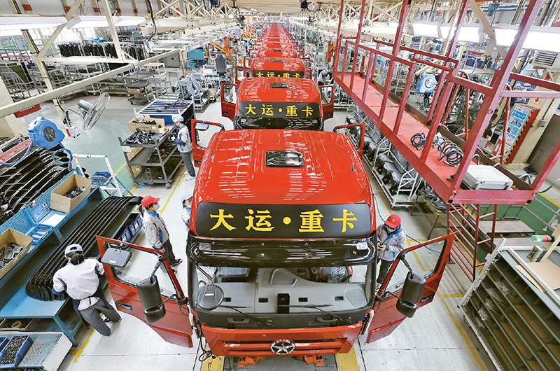 近年來,山西大力實施產(chǎn)業(yè)鏈“鏈長制”建設(shè),著力構(gòu)建以制造業(yè)為重點的現(xiàn)代化產(chǎn)業(yè)體系。2022年,山西新能源汽車、高端裝備制造等十大重點產(chǎn)業(yè)鏈帶動上下游經(jīng)營主體2200多戶,營收總額突破3800億元。圖為大運重卡總裝車間。 山西日報社供圖