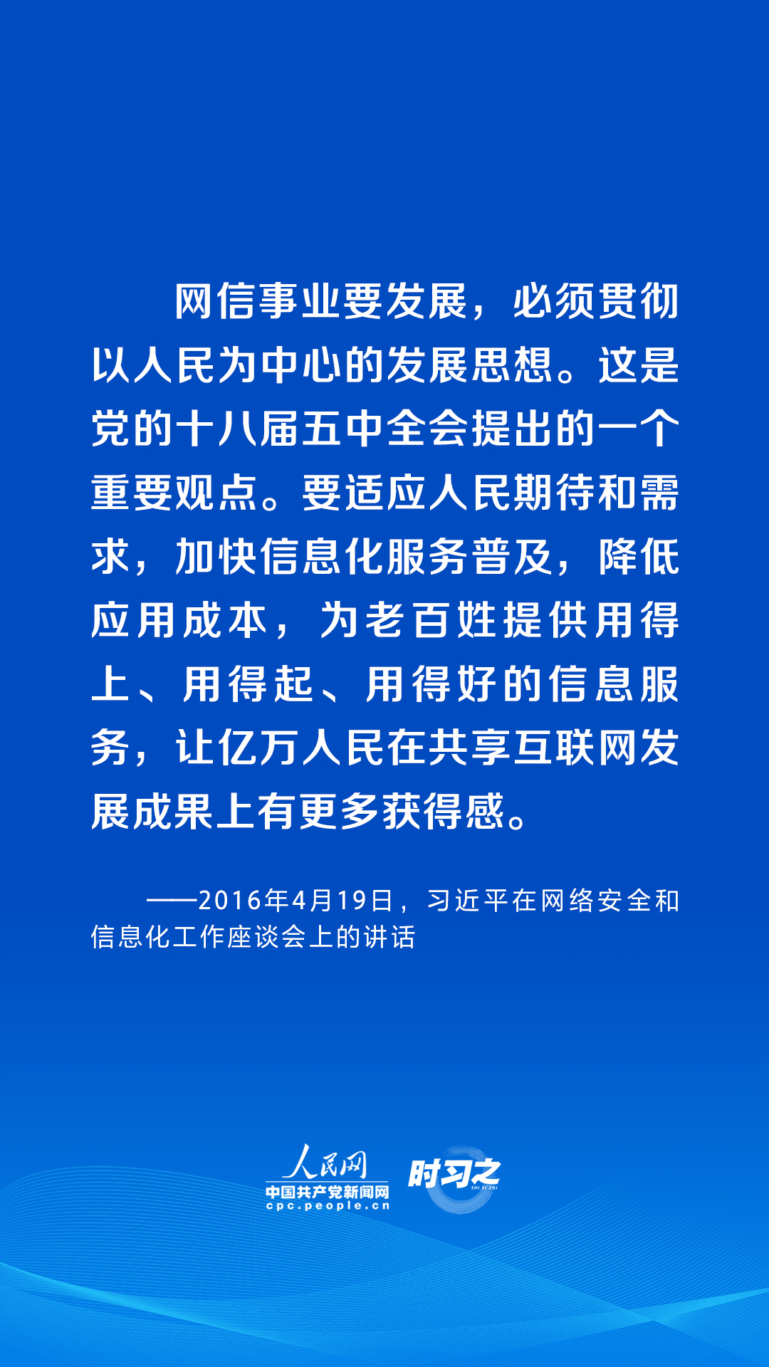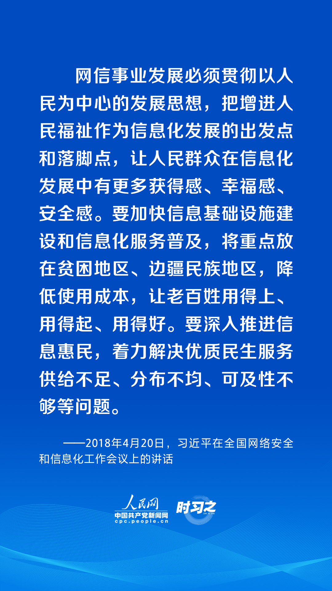 “網(wǎng)信事業(yè)要發(fā)展,必須貫徹以人民為中心的發(fā)展思想?!秉h的十八大以來(lái),習(xí)近平總書(shū)記高度重視網(wǎng)絡(luò)信息化建設(shè),始終堅(jiān)持把增進(jìn)人民福祉作為信息化發(fā)展的出發(fā)點(diǎn)和落腳點(diǎn),讓人民群眾在信息化發(fā)展中有更多獲得感、幸福感、安全感。