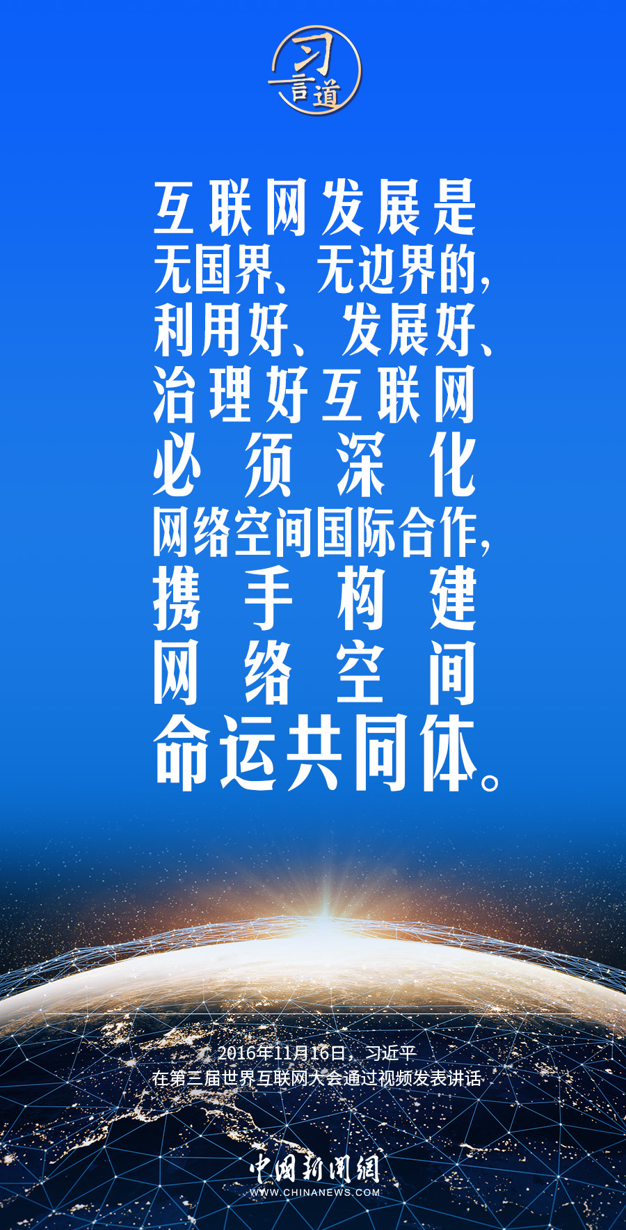 習(xí)近平總書(shū)記高度重視網(wǎng)絡(luò)空間國(guó)際合作,多次作出重要論述,強(qiáng)調(diào)要加快構(gòu)建網(wǎng)絡(luò)空間命運(yùn)共同體。