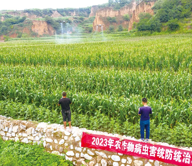 8月3日,左權縣農業(yè)農村局技術服務隊隊員在突堤村使用植保無人機開展大秋作物病蟲害統(tǒng)防統(tǒng)治。今年以來,左權縣農業(yè)農村局把實施農作物病蟲害防治作為保證秋糧豐收的重要抓手,針對前期干旱蟲害玉米雙斑螢葉甲的發(fā)生, 在全縣開展1.9萬畝病蟲害集中統(tǒng)防統(tǒng)治,確保糧食生產安全,實現(xiàn)農作物增產增效。
