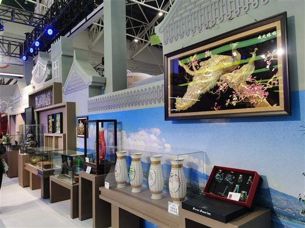 “這幅‘錦繡天成’全部采用麥秸一根根地粘上去,整體使用的是立體浮雕形,讓孔雀看起來更有立體感和美感?!睍x中市太谷區(qū)瑞升慶麥秸藝術(shù)有限公司工作人員任李平向參觀者介紹,麥秸畫以麥秸為原料,經(jīng)過熏、蒸、刮、推、燙、剪、刻、編、繪等28道工序純手工完成,利用麥秸本身的光澤、紋理和質(zhì)感,根據(jù)創(chuàng)作題材精心剪裁和粘貼而成,工藝復(fù)雜,風(fēng)格典雅,是民間美術(shù)中重要的藝術(shù)形式。