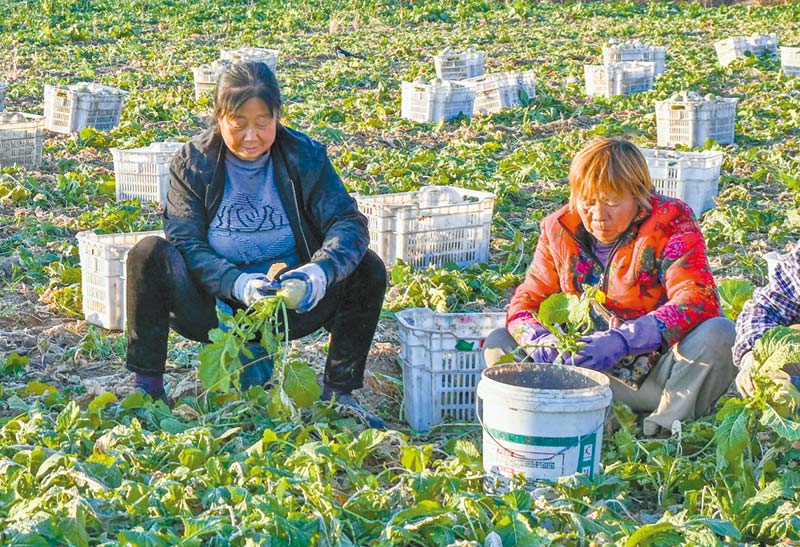 11月19日,平遙縣西達(dá)蒲村的村民正在田野中收獲芥菜。這些芥菜是他們種植的第二季蔬菜,收獲后將銷往四川等地。