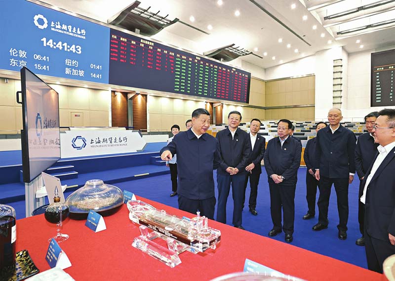 28日下午,習近平一下列車就前往上海期貨交易所考察。他結(jié)合電子屏幕和重要上市品種交割品展示,聽取交易所增強全球資源配置能力、服務(wù)實體經(jīng)濟和國家戰(zhàn)略等情況介紹,了解交易所日常資金管理和交割結(jié)算等事項。習近平強調(diào),上海建設(shè)國際金融中心目標正確、步伐穩(wěn)健、前景光明,上海期貨交易所要加快建成世界一流交易所,為探索中國特色期貨監(jiān)管制度和業(yè)務(wù)模式、建設(shè)國際金融中心作出更大貢獻。