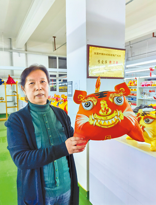 李愛萍展示非遺產(chǎn)品——將軍虎。 記者 郝宇佳 攝