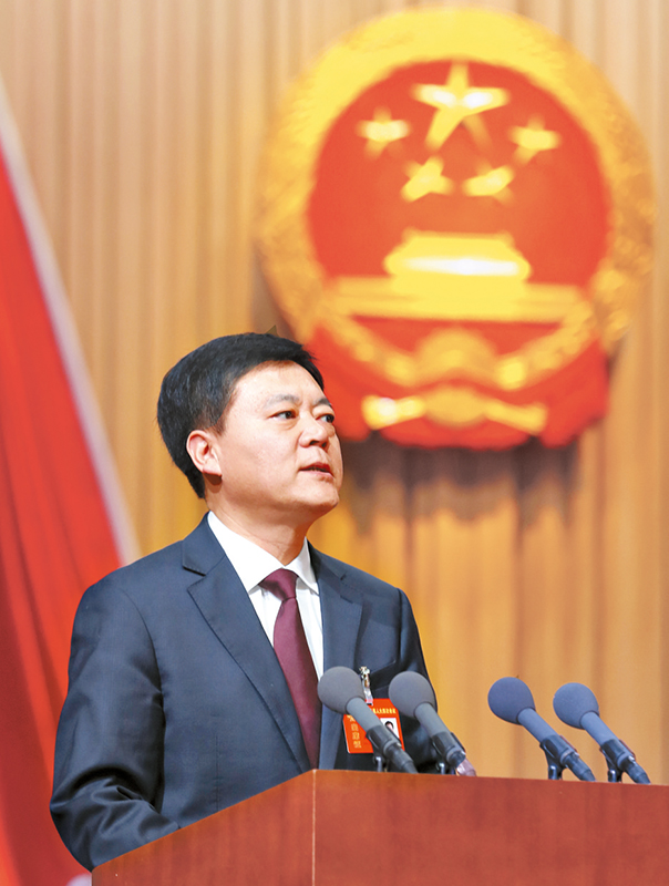 2月27日,在晉中市第五屆人民代表大會(huì)第四次會(huì)議上, 劉星作政府工作報(bào)告。 記者 謝晉 攝