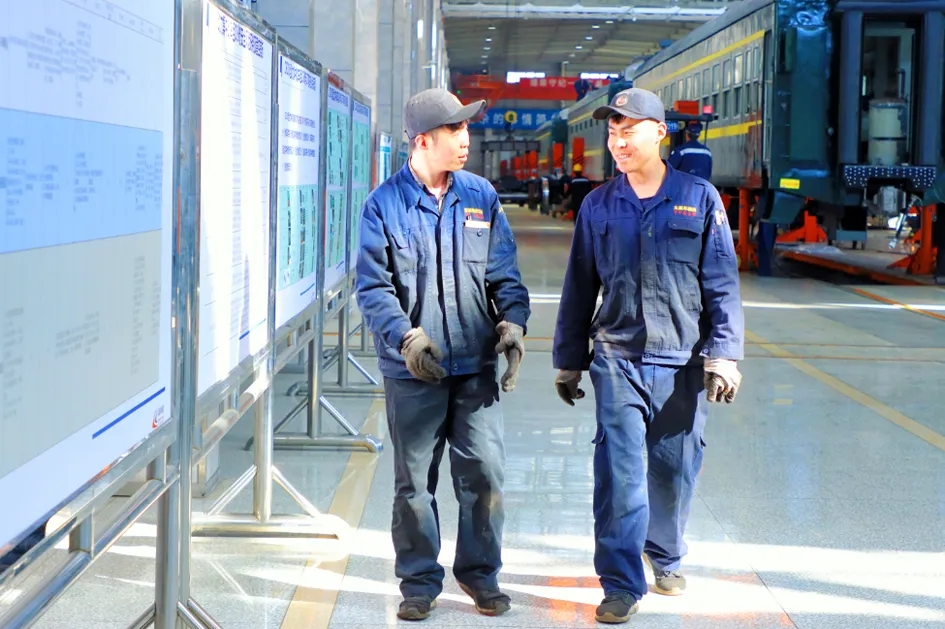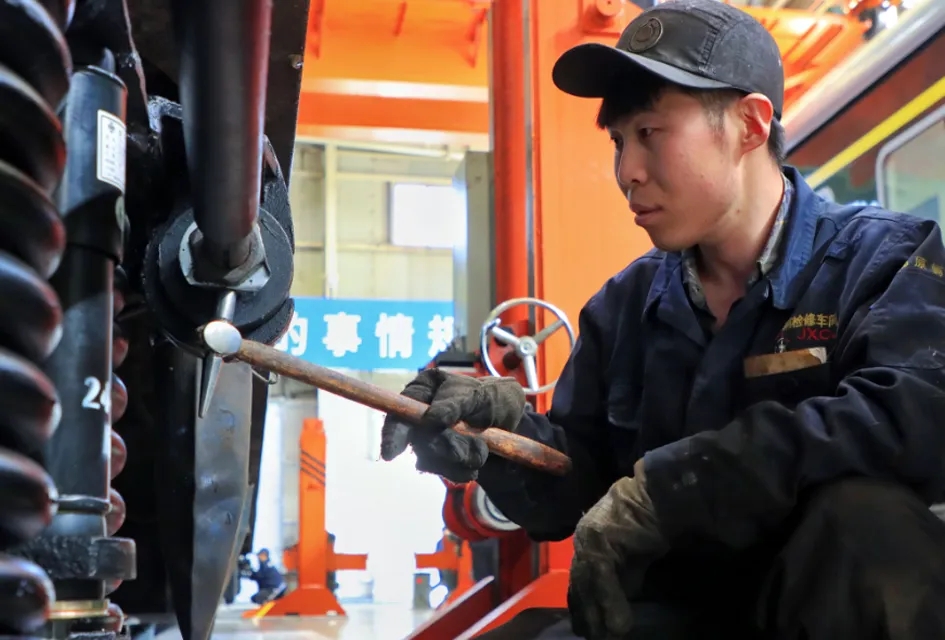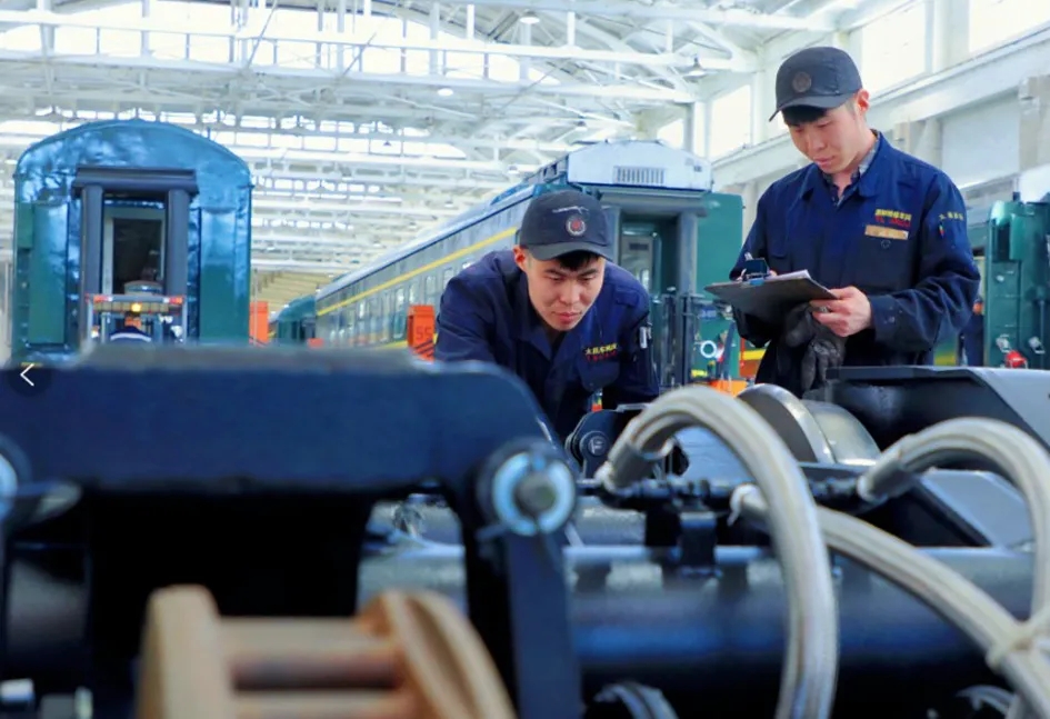 4月14日,在太原車輛段檢修車間,郭建、郭康正在認真組裝客車部件,他們兄弟倆來自晉中祁縣,2015年同時走上工作崗位,在客車的段修崗位一干就是9年。平日里他們兢兢業(yè)業(yè)、認真負責,為了保證運行安全,車輛在累計運行60萬公里或2年半要進行一次入段檢修,要將車輛的走行、制動等系統(tǒng)完全拆解開,便于全面檢查、維護和保養(yǎng),在檢修完成后,還要對車輛各部件進行組裝、校驗、調試等,必須確保精準無誤、嚴絲合縫。