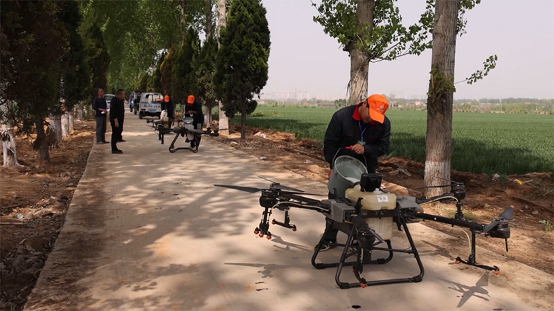 農(nóng)業(yè)社會(huì)化服務(wù)組織將統(tǒng)一配制好的肥料注入無(wú)人機(jī)。新華社記者 許雄 攝