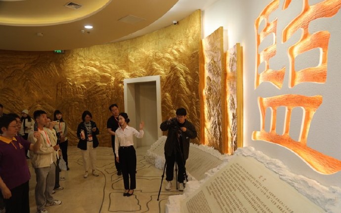 圖為網(wǎng)絡(luò)名人在運(yùn)城河?xùn)|池鹽博物館參觀考察。錢龍 攝