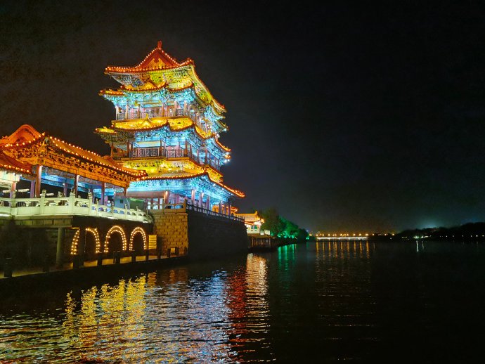 圖為汾河臨汾段夜景。網(wǎng)絡(luò)博主@小滿 攝