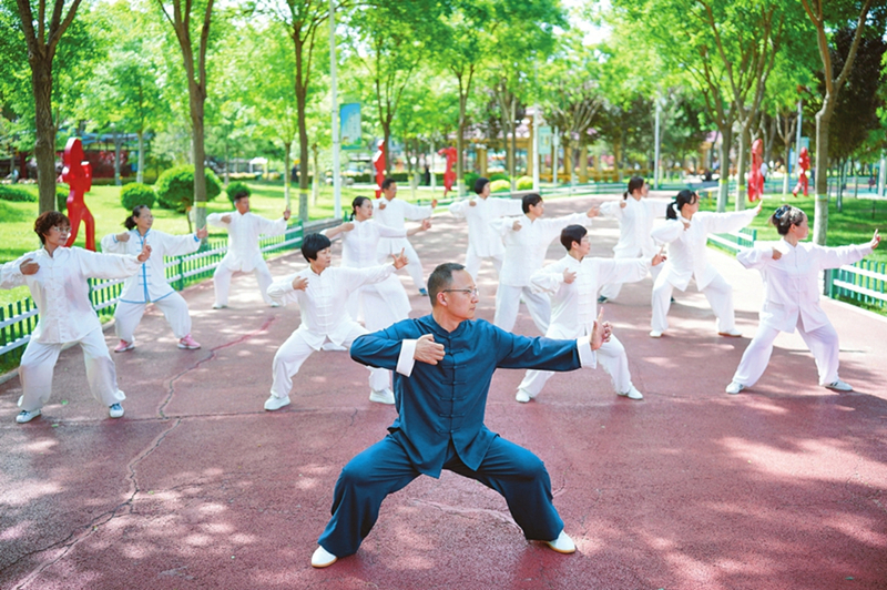 圖為健身愛好者在運城市體育公園練習(xí)八段錦,樂享健康生活。閆鑫 攝