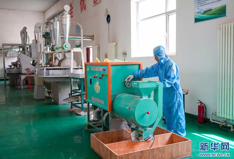 工作人員正在雜糧加工生產(chǎn)線(xiàn)上作業(yè)。新華網(wǎng) 發(fā)(張宗昌 攝)