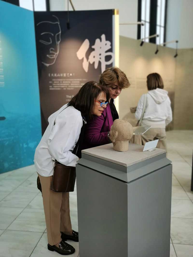 此次展覽還有首次亮相海外的2021年回歸天龍山石窟原屬地的第一尊流失佛首1:1復(fù)制品、天龍寺遺址出土的6件石刻造像復(fù)制品。