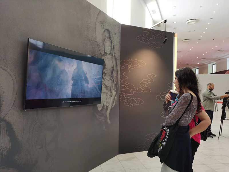 山西日?qǐng)?bào)記者范珉菲報(bào)道 5月11日,“美成天龍——天龍山石窟數(shù)字復(fù)原國(guó)際巡展(希臘站)”在希臘古城雅典扎皮翁宮開展。